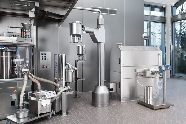 Vacuum-supported or compressed air-operated conveyor systems are used to transport powders over longer distances, even between floors. They ensure a gentle and loss-free material flow. Vacuum conveyors are used to transport powders between floors or spatially separated production areas and for the automated feeding of mixers, granulation systems or Tablet Coaters.