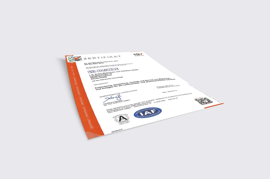 Reliability, safety and compliance - certificates document our standards and our commitment: our management system is certified in accordance with DIN EN ISO 9001:2015, DIN EN ISO 14001:2015 and DIN EN ISO 50001; our occupational health and safety fulfils DIN ISO 45001:2018. We have an EX certificate for maximum safety in potentially explosive atmospheres. As a "Known Consignor" (LBA), we also ensure audited, smooth supply chains.