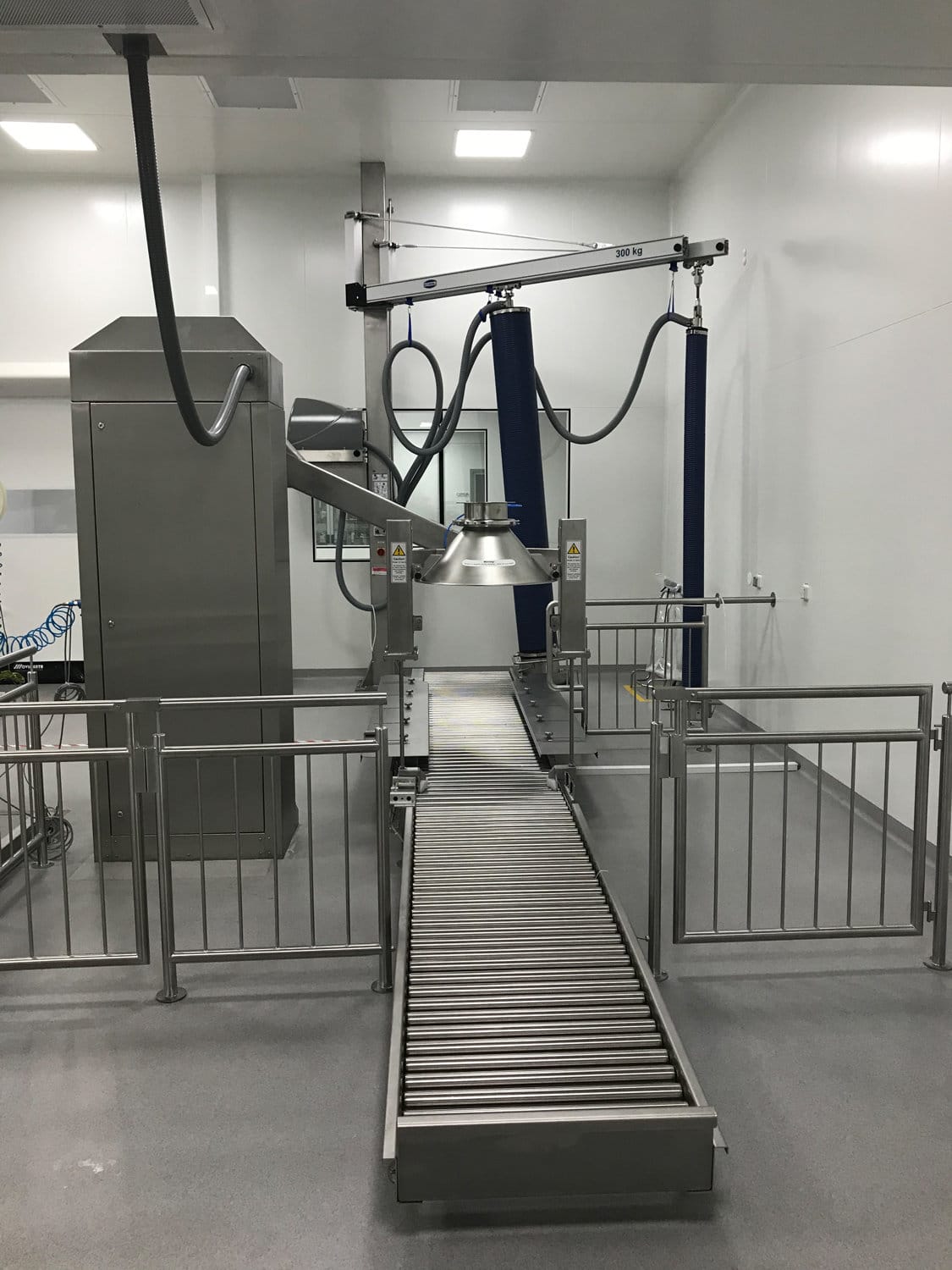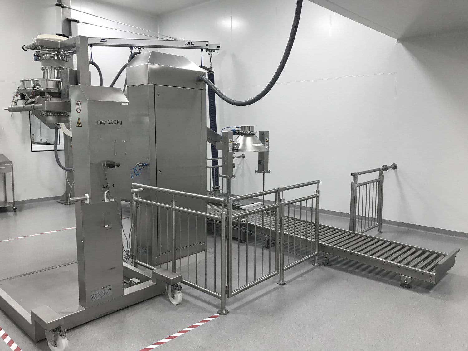 The BSL automates the picking up and emptying of drums of different sizes, ensuring a smooth and fast transition to subsequent process steps such as sieving or mixing.