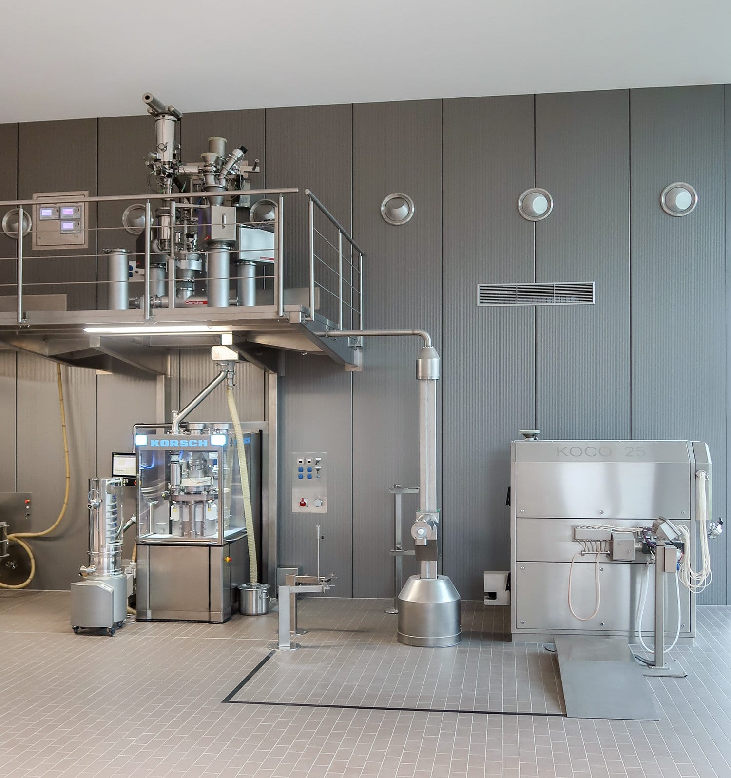 Yes, the KOCO® is ideal for integration into continuous production lines. In combination with systems such as the ROB 50 from L.B. Bohle, the entire material flow between the Tableting press and coater can be automated and monitored.