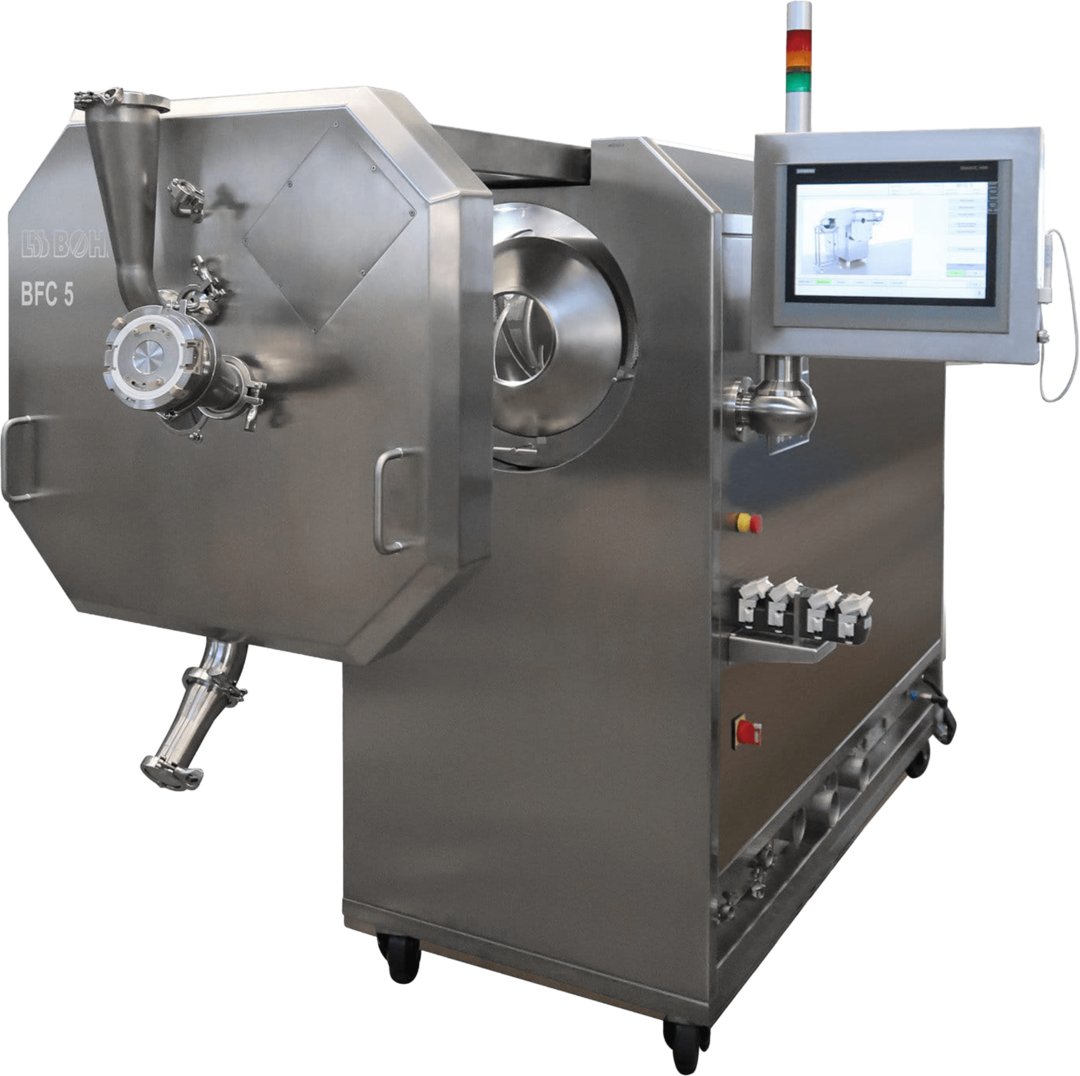 The BFC 5 Laboratory Coater served as the basic machine for the project. In a second step, L.B. Bohle configured the BFC as a high-containment Tablet Coater.
