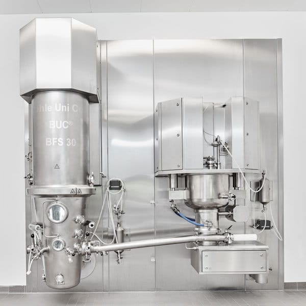 The Bohle Uni Cone BUC® technology ensures complete fluidisation of the particles and uniform filming. The result: maximum product quality, short cleaning times thanks to the WIP system and an ergonomic, economical solution for optimising classic wet granulation processes.
