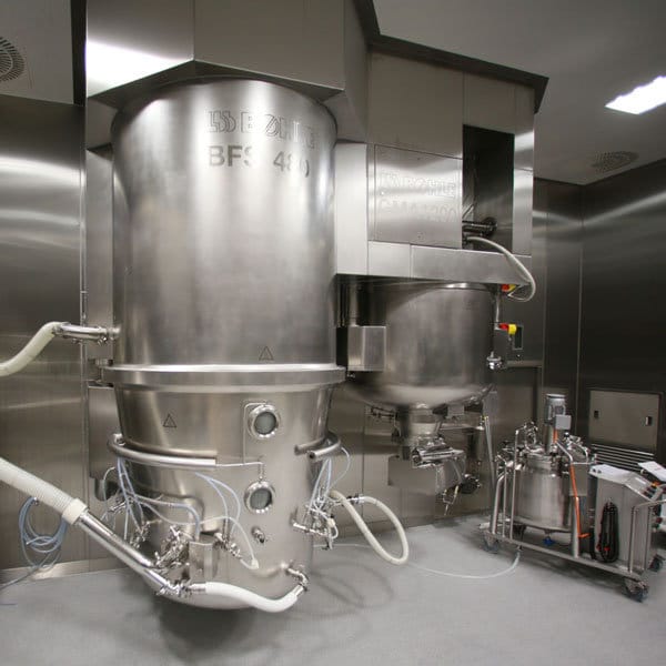 - High-shear granulator and fluid bed granulation right next to each other