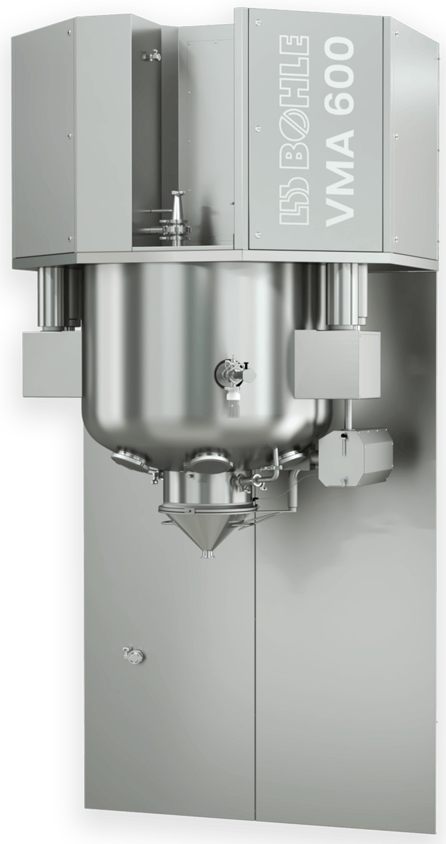 The VMA product range comprises typical Single-Pot Granulators with agitator and chopper unit and a Top-Drive drive. Two agitators ensure the shearing effect and product loosening. They prevent the formation of lumps and produce high-quality granulates. The GMP-compliant process vessel with double casing is the centrepiece of the VMA.
