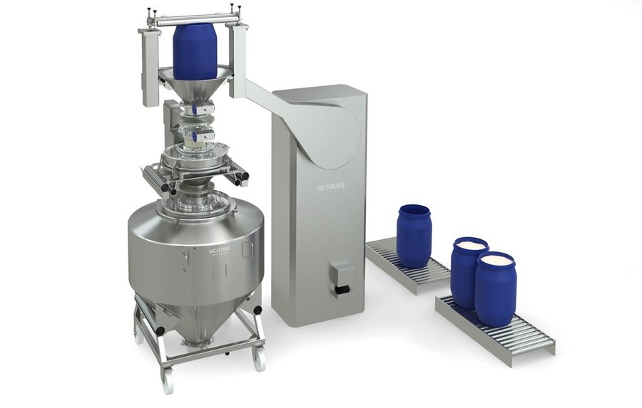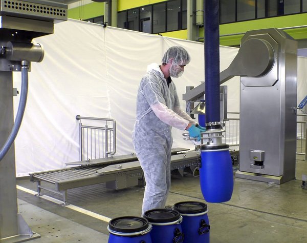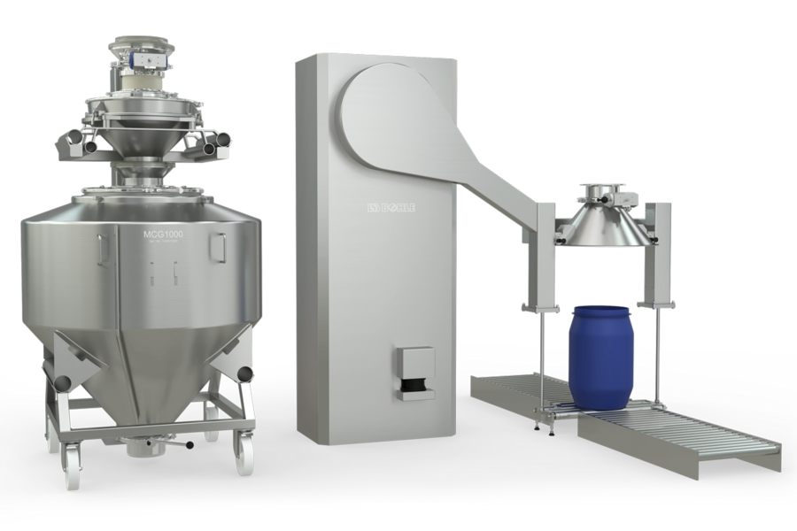 The BSL automates the picking up and emptying of drums of different sizes, ensuring a smooth and fast transition to subsequent process steps such as sieving or mixing.