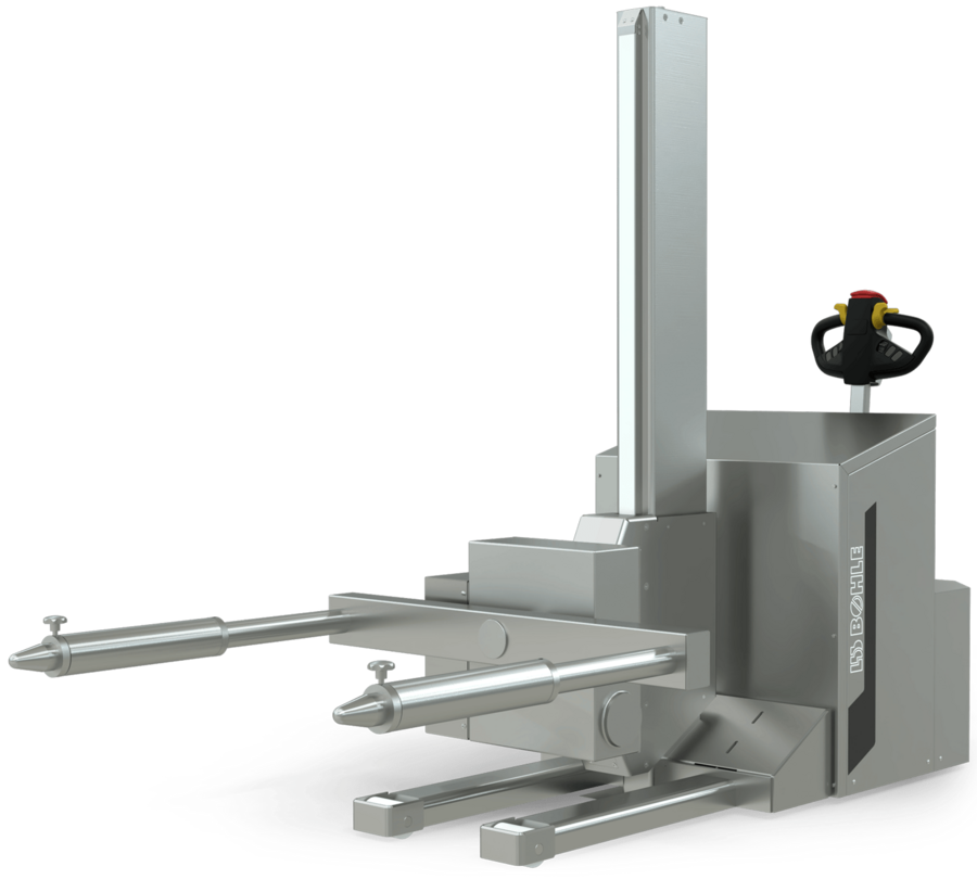 All mobile lifters from L.B. Bohle are cGMP-compliant and designed for the universal handling of different containers. An electric drive is standard from 400 kg and ensures convenient load transport.
